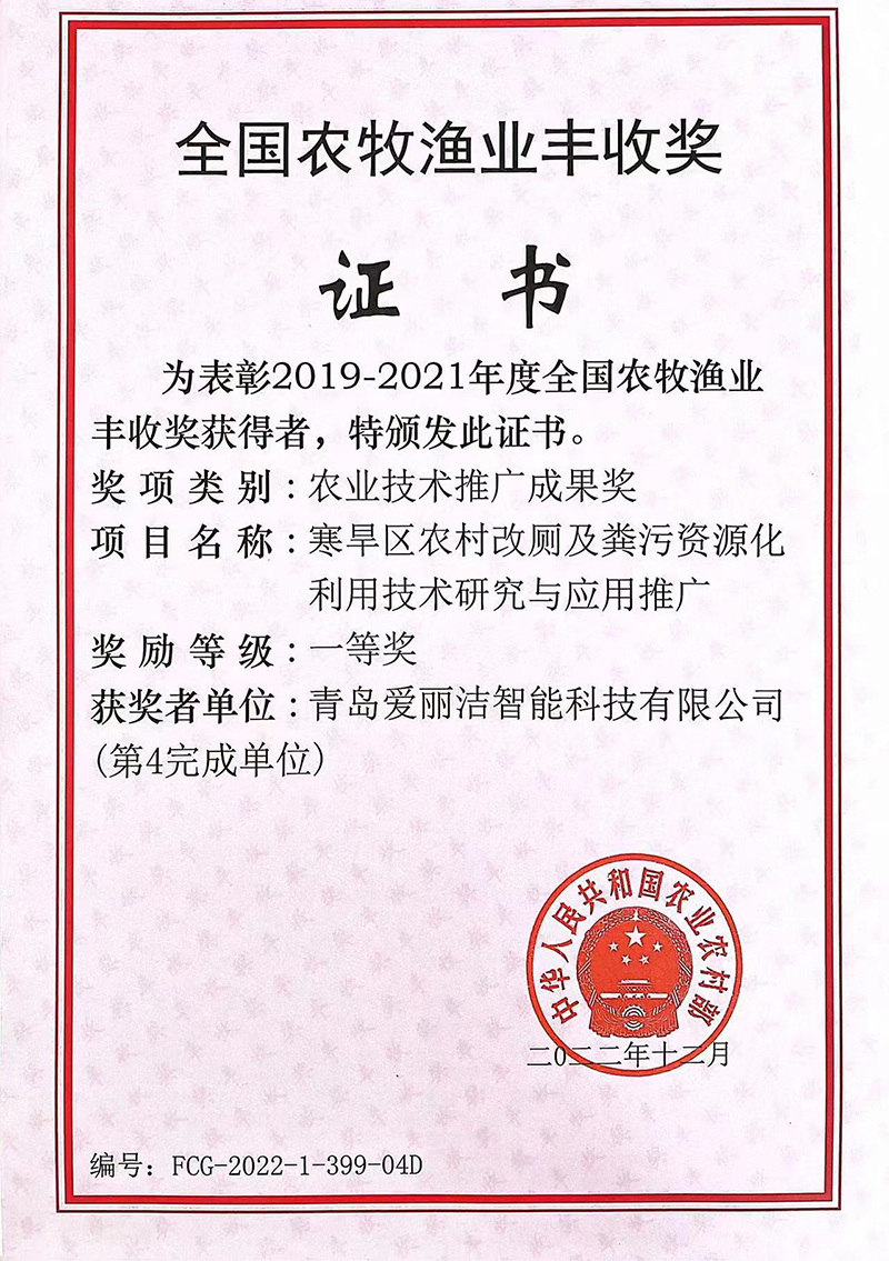 青島愛麗潔智能科技有限公司成立于2015年7月,注冊資金2000萬,是一家專注于提供農(nóng)村廁所解決方案、產(chǎn)品研發(fā)、生產(chǎn)和銷售于一體的企業(yè),已通過質(zhì)量管理體系認(rèn)證,先后被評為國家級“高新技術(shù)”企業(yè)、“專精特新”示范企業(yè)、榮獲德國當(dāng)代好設(shè)計(jì)優(yōu)勝獎等諸多榮譽(yù),公司擁有碩士、博士組成的專家研發(fā)團(tuán)隊(duì),獲得國家知識產(chǎn)權(quán)局頒發(fā)的五十多項(xiàng)專利。我公司早在于2017年開始同“農(nóng)業(yè)農(nóng)村部規(guī)劃設(shè)計(jì)研究院”進(jìn)行密切合作,共同研發(fā)出適合我國“農(nóng)村廁所改造”和“糞污資源化利用”的專利產(chǎn)品,有效的解決了農(nóng)村廁所問題。